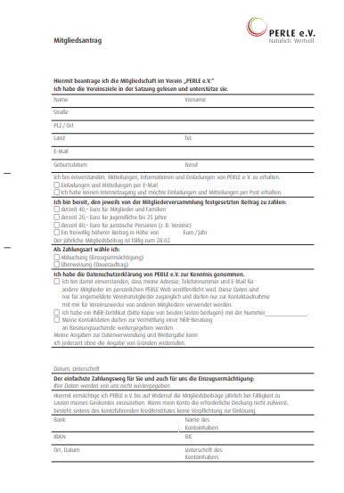 Durch eine Mitgliedschaft bei PERLE e.V. kann die Arbeit des Vereins aktiv und/oder passiv unterstützt werden.